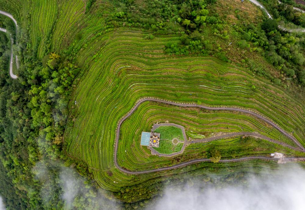 進入墨脫,路兩旁、半山腰、云霧間,可見大小不一的茶園。背崩鄉格林村的茶園在群山懷抱中層層疊疊,采茶的村民在云霧縹緲間若隱若現。