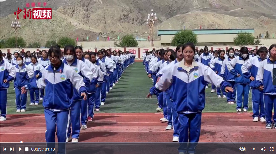 近日,在西藏山南市第二高級中學的操場上,一套別具一格的課間操正在進行。這套課間操由援藏和在藏的音樂、體育教師們合作創編,巧妙地融合了西藏自治區七個地市的特色樂舞元素和國家級“非物質文化遺產”安徽巢湖民歌,充分展現學生的精神面貌和青春活力,體現皖藏兩地之間、自治區內七地市之間文化的交流融合。隨著音樂響起,學生們站在寬闊的操場上,伴隨著節奏整齊劃一地開始了動作,這樣的結合不僅增添了課間操的趣味性和觀賞性,也讓學生們在鍛煉身體的同時,感受到了不同文化的交融與碰撞。
