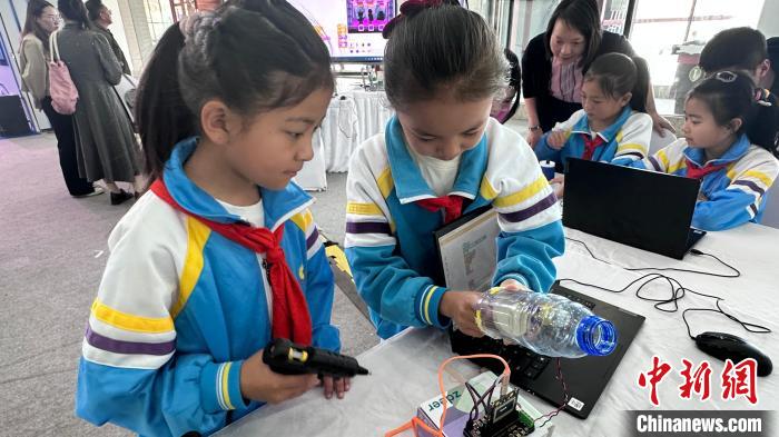 圖為西藏自治區拉薩市城關區海城小學的學生正在學習“AI創客”的課程。澤塔雍措攝