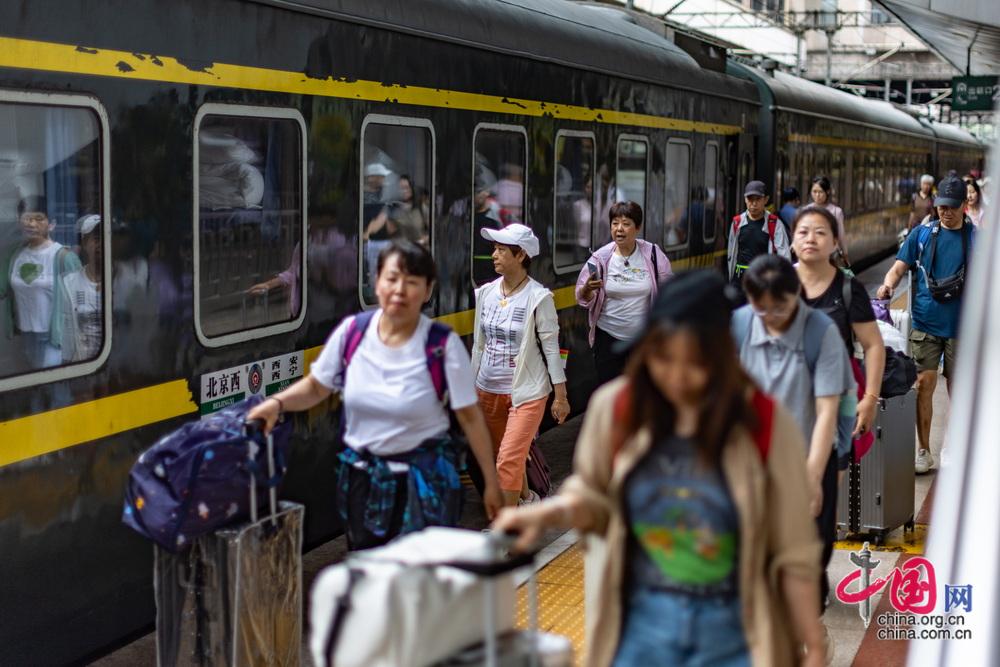 7月1日,“京藏號(hào)”旅游列車(chē)從北京西站出發(fā),450名游客開(kāi)啟為期14天的旅途。中國(guó)網(wǎng)記者 鄭亮攝