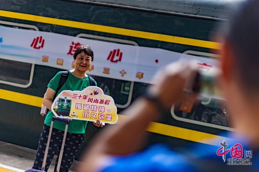 發(fā)車(chē)前,乘客在“京藏號(hào)”旅游列車(chē)前拍照留念。中國(guó)網(wǎng)記者 鄭亮攝