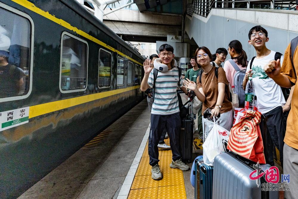 7月1日13時(shí)05分,450名游客乘坐“京藏號(hào)”旅游列車(chē)從北京西站出發(fā),即將開(kāi)啟14天的旅途。