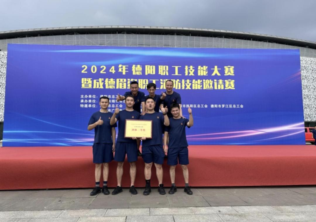 7月4日,2024年德陽職工技能大賽暨成德眉資職工消防技能邀請賽在綿竹市體育中心舉辦。來自成都市、德陽市、眉山市、資陽市的8支企業專職消防隊和20支社會面微型專職消防站共136名選手參加比賽。國網四川省電力公司特高壓直流中心援藏直流運維分部德陽換流站7名專職消防員組成1支企業專職消防隊代表羅江參賽并取得第二名的好成績。