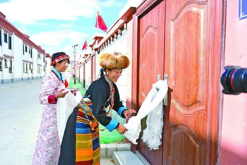 上海援藏重點項目——拉孜縣查務鄉吉角村集中搬遷暨鄉村振興項目完工并交付,群眾入住新家。