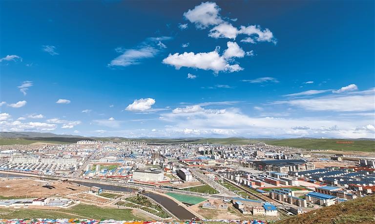 那曲市區鳥瞰圖。記者 萬靖 攝