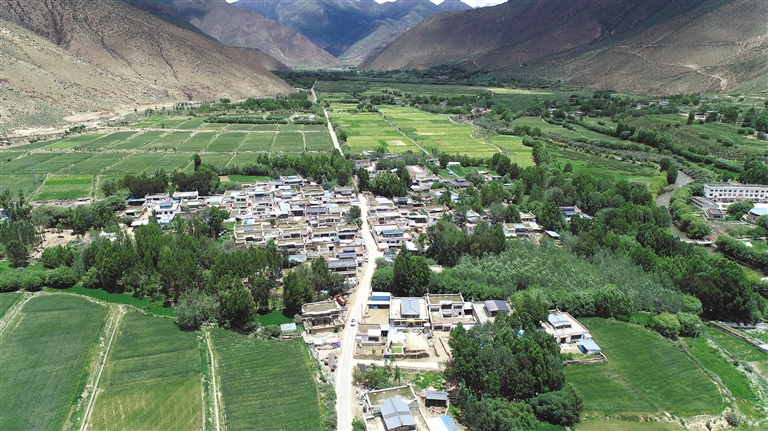 圖為位于溫曲河谷的山南市乃東區結巴鄉格桑村1組俯瞰圖。通訊員 潘高 記者 汪純 攝