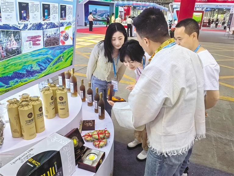 今年5月底,昌都市藍(lán)天圣潔農(nóng)業(yè)發(fā)展集團(tuán)有限公司選取藏香雞、葡萄酒、藏香、當(dāng)歸等300余種優(yōu)質(zhì)農(nóng)特產(chǎn)品走進(jìn)第六屆中國西部國際投資貿(mào)易洽談會(huì),促成兩地8家企業(yè)現(xiàn)場簽署2300萬元產(chǎn)銷合作協(xié)議。
