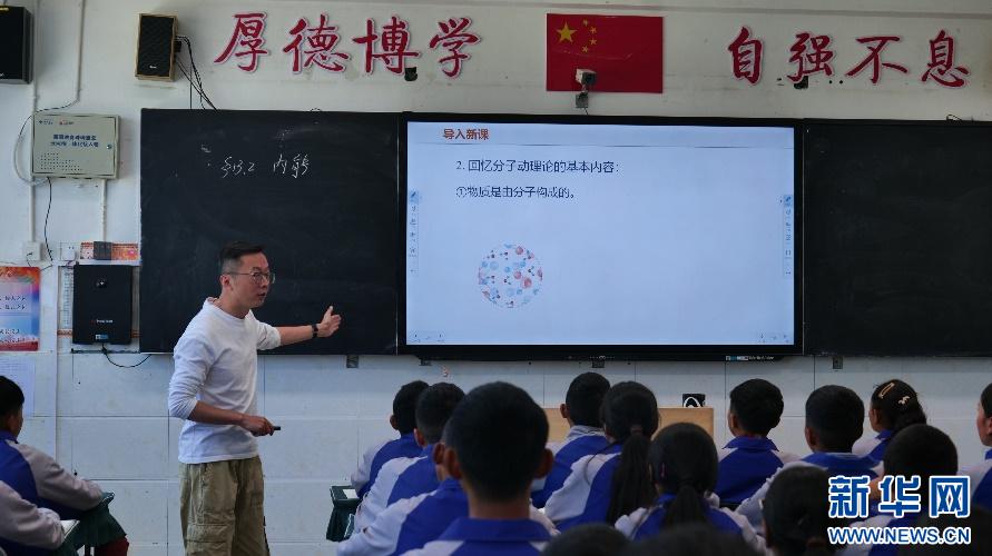 8月14日,援藏老師陸汶軍正在上物理課。新華網發 吳金朋攝
