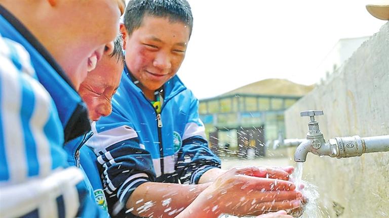 謝通門縣縣城自來(lái)水管網(wǎng)升級(jí)改造后,學(xué)生用自來(lái)水洗手。