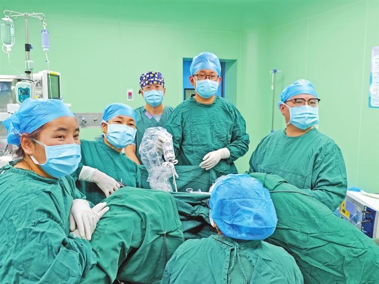 上海援藏醫療隊專家、日喀則市人民醫院婦科主任隋孟松帶領本地婦科醫生成功開展全市首例腹腔鏡下全子宮切除術。