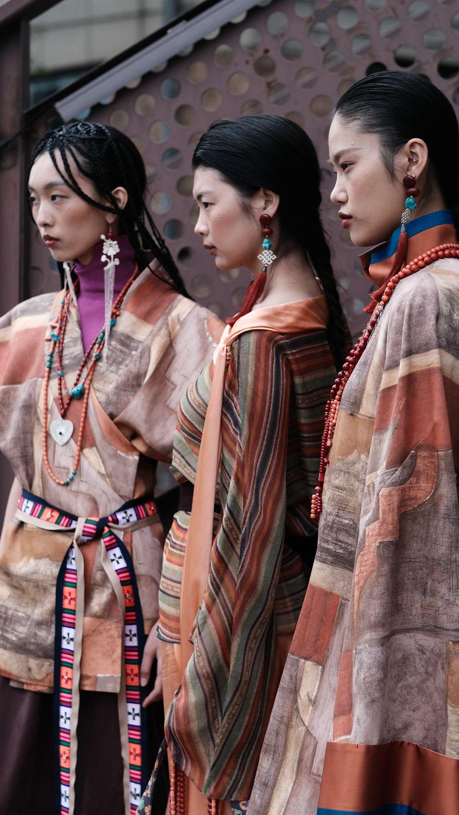 以馬乖在中國國際時裝周的發布產品為例,連續多季深根民族文化的傳承與創新,在跟隨株洲援藏工作隊進入扎囊縣后,馬乖開始深入發掘藏族服飾與時尚消費的融合創新,跟其他設計師借鑒少數民族元素做新產品的初衷不同,素白所呈現的新款背后是整個團隊研發的藏族非遺產品的動態活化過程,氆氌之鄉的“經濟產品”是馬乖展開文化元素呈現后的落點,共建面料研發中心,將手工藝面料再造作為時尚服飾的亮點,研發新產品,提質文化成果的經濟轉化。觀察素白發布的往季產品,不難發現,精粹歷史文化遺產、復興民族手工藝、打造時尚融合新品是品牌發展常態,從大力發展植物染到玫瑰纖維的研發和使用,馬乖一直以設計之力、品牌影響在為消費者尋找更適合中國人自己的時尚發展模型。