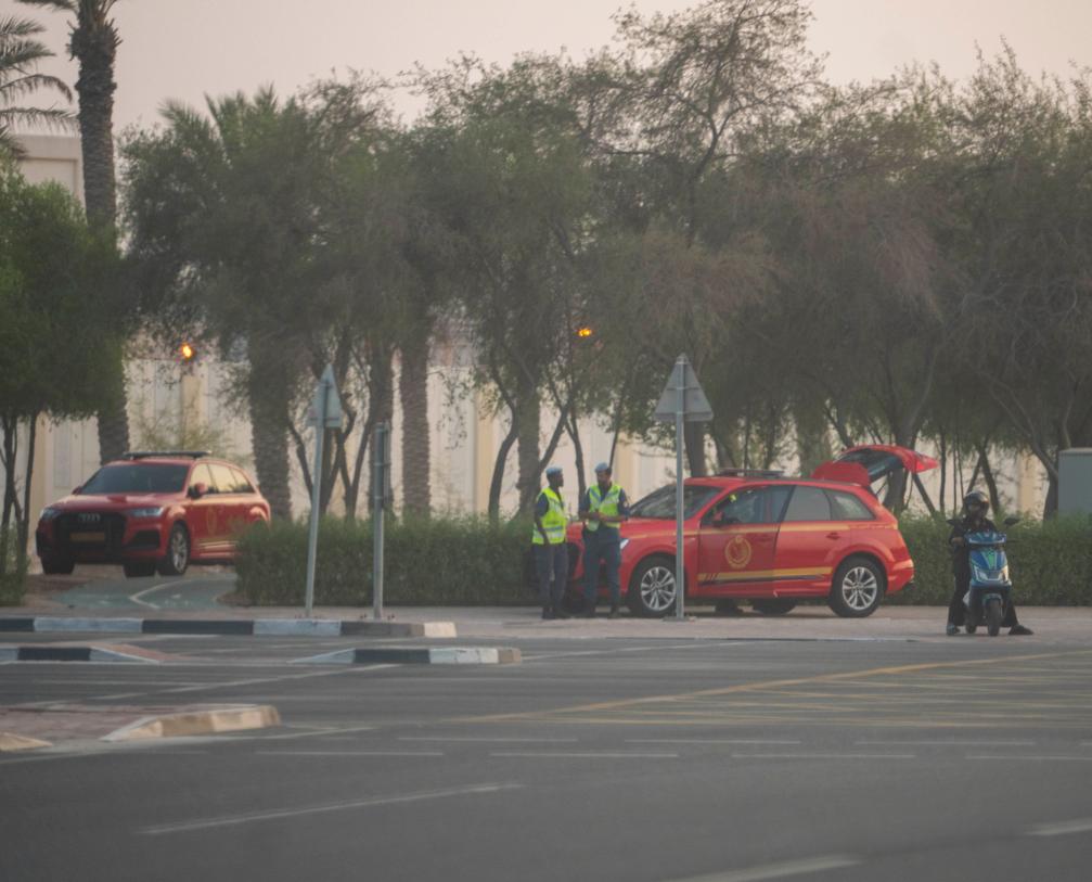 9月9日,在卡塔爾首都多哈,安全人員在事發現場附近執勤。新華社發(尼庫攝)