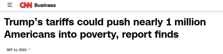 美國有線電視新聞網(CNN)11日報道指出,特朗普政府的關稅政策在推高聯邦收入的同時,恐導致顯著的社會成本。耶魯大學預算實驗室最新分析顯示,這一系列政策或使近百萬美國人陷入貧困。
