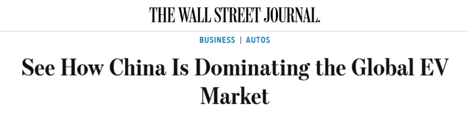 《華爾街日報》9月17日發表文章稱,在電動汽車領域,“中國制造”的足跡在不斷擴大,目前已占全球電動汽車銷量的一半以上。