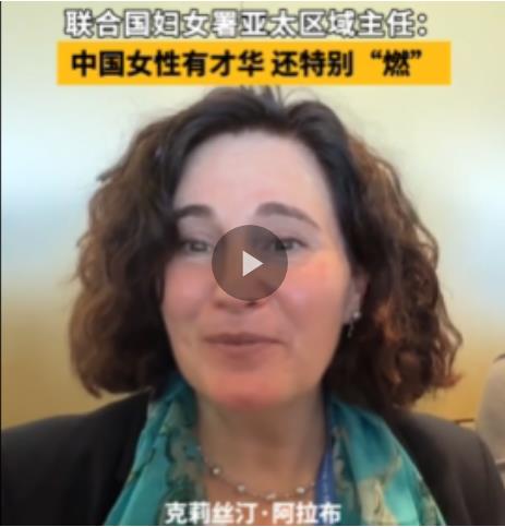 全球婦女峰會于10月13日至14日在北京舉行。會議期間,聯合國婦女署亞太區域主任克莉絲汀·阿拉布在接受中國日報網記者采訪時,用“燃”字來形容中國女性。她說,中國女性是一群充滿激情、才華橫溢又催人奮進的女性。在與全國婦聯的交流中,她深刻感受到,全國婦聯致力于推動女性進步、促進性別平等、增強女性力量,這種狀態非常“燃”。