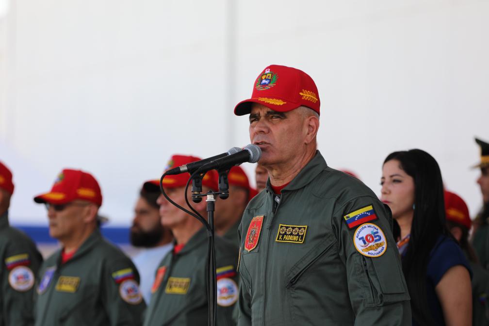 11月27日,在委內瑞拉馬拉凱市的解放者空軍基地,委內瑞拉國防部長洛佩斯在空軍成立105周年紀念活動上發表講話。新華社發(委內瑞拉國防部供圖)
