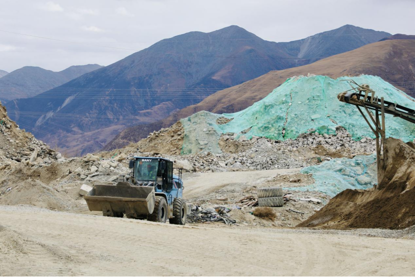 圖為廠區(qū)內(nèi)工人開(kāi)著推土機(jī)在工作。次仁羅布 攝