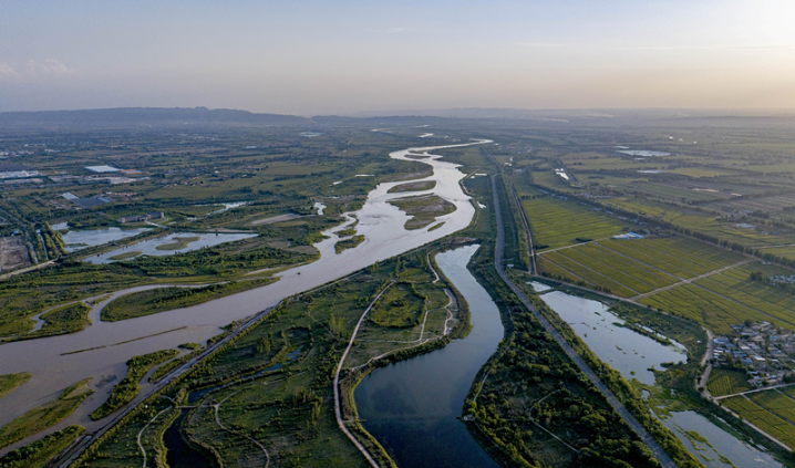 這是8月23日在寧夏吳忠市利通區(qū)拍攝的黃河(無(wú)人機(jī)照片)。新華社記者 楊植森 攝