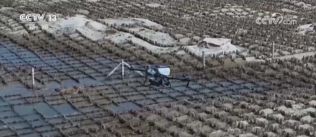 在巴州輪臺(tái)縣草湖鄉(xiāng)國(guó)家沙化土地封禁保護(hù)區(qū)內(nèi),工作人員根據(jù)保護(hù)區(qū)水資源分布、自然氣候條件和沙丘移動(dòng)規(guī)律,采用無(wú)人機(jī)飛播、人工撒種相結(jié)合的方式,精準(zhǔn)播撒胡楊、紅柳和甘草種子,使其更好生長(zhǎng)、成活。