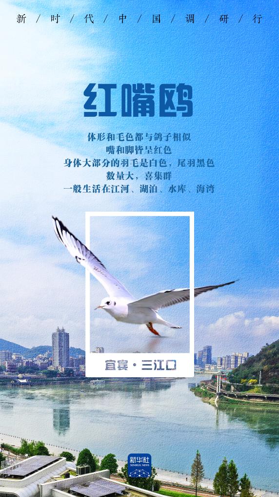 近年來,宜賓生態環境日益改善,每年吸引成群紅嘴鷗來此越冬,直到次年三月離開。為保護這些“遠方來客”,當地沿金沙江、岷江、長江交匯各向上游延伸1公里劃為紅嘴鷗保護區,成為它們的臨時家園。