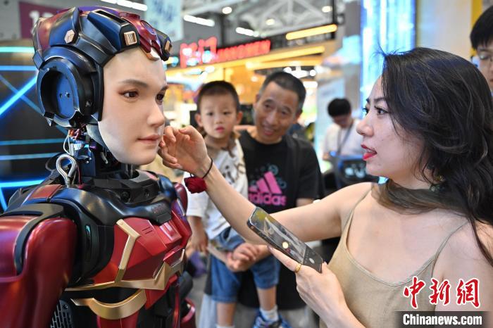 走進人工智能展區,數字華夏(深圳)科技有限公司(以下簡稱“數字華夏”)展出的“夏瀾”人形機器人格外引人注目。這款擁有逼真面部表情和高度智能化交互能力的產品,已成為現場觀眾爭相合影的“明星展品”。