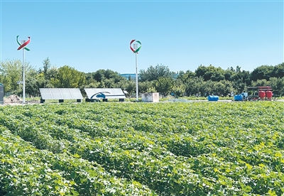 “在示范區,來自中國的光伏板、智能水肥一體機與滴灌系統配合,可以根據作物需要自動施肥,相比人工施肥,養分供應更及時和高效。項目實施兩年來,該節水農業示范區棉田的籽棉平均畝產量達到307公斤,遠高于當地120公斤的平均畝產量,且用水量僅約為當地的70%,滴灌和施肥所需能源也主要來自于光伏發電。”王平接受本報記者采訪時介紹,“這項合作不僅為烏方科研技術人員提供了技術交流實踐的基地,也讓當地民眾看到鹽堿地生態治理和經濟效益協同的可能性”。