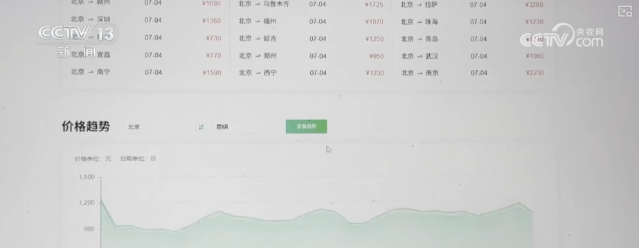 目前,昆明、烏魯木齊、西安等長線目的地的暑期機(jī)票價(jià)格已開始小幅上漲。記者查詢發(fā)現(xiàn),以北京—昆明機(jī)票為例,7月上旬價(jià)格在千元左右,7月中旬開始至8月中旬,價(jià)格小幅上漲,均價(jià)在1200元到1500元之間。