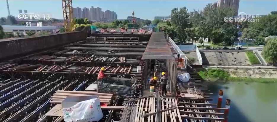 持續的晴熱天氣給河南各地的重點工程項目和生產一線建設也帶來“烤”驗。這是沙潁河周口至省界航道提升工程通濟大道橋施工現場,工人們正在安裝橋面鋼筋。工人們穿戴了一款特殊的空調防護服,通過內置風扇和冰袋循環系統進行降溫。