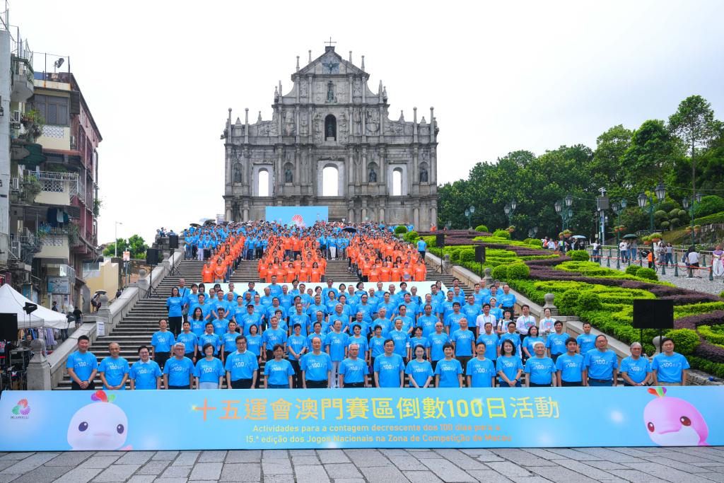 這是8月1日在澳門拍攝的第十五屆全國(guó)運(yùn)動(dòng)會(huì)倒計(jì)時(shí)100天慶祝活動(dòng)現(xiàn)場(chǎng)。新華社發(fā)(張金加攝)