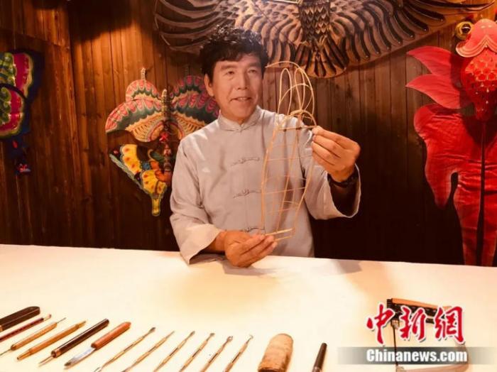 圖為國家級“非遺”項目“天津風箏魏制作技藝”第四代傳承人魏國秋正在制作風箏