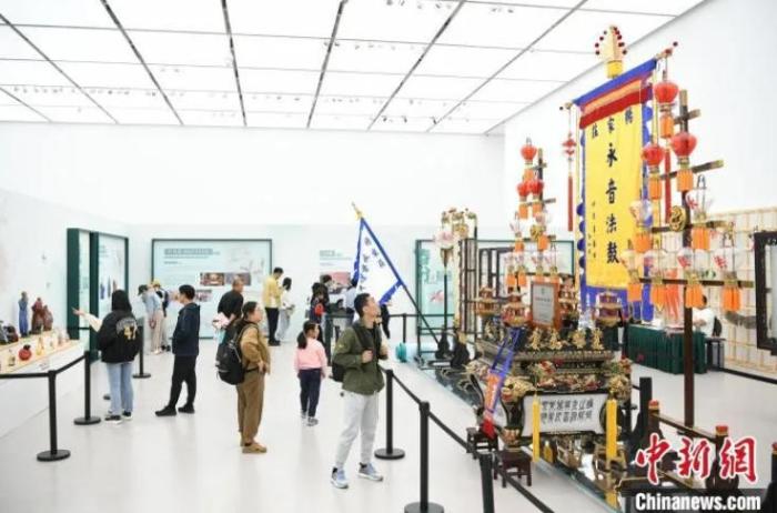 2024京津冀非物質文化遺產聯展上,觀眾參觀津門法鼓·楊家莊永音法鼓。中新社記者 佟郁 攝