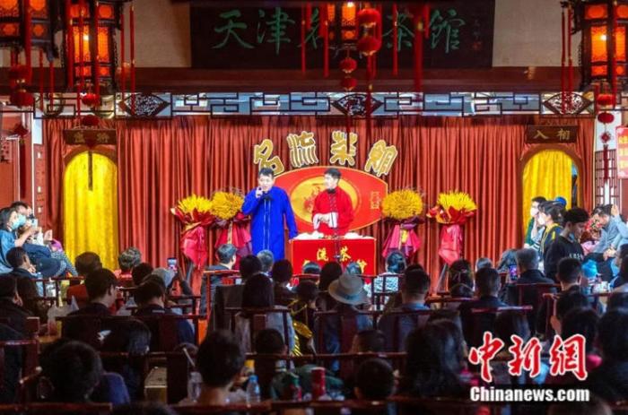 圖為“五一”假期首日,民眾在天津古文化街宮前廣場觀看民俗花會表演。魏進 攝