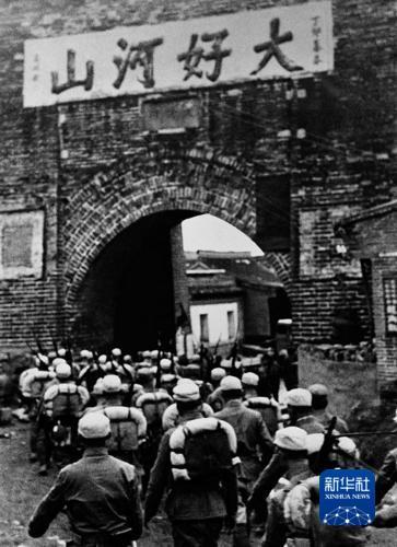 山海關的收復,不僅為人民軍隊進軍東北掃除了障礙,也成為中華民族戰勝日寇收復山河的象征。作為攝影家沙飛的學生,時任《冀熱遼畫報》記者的張進學拍攝到了我軍光復山海關的珍貴鏡頭。這張標志性照片被選作晉察冀畫報第9、10期合刊封面發表,是反映八路軍軍事勝利的重要攝影作品之一。
