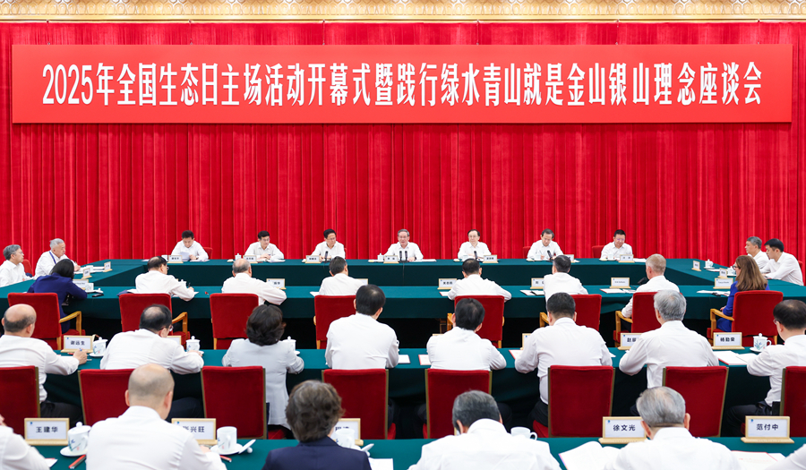 8月15日,中共中央政治局常委、國務院總理李強在北京出席2025年全國生態日主場活動開幕式暨踐行綠水青山就是金山銀山理念座談會。新華社記者 劉彬 攝