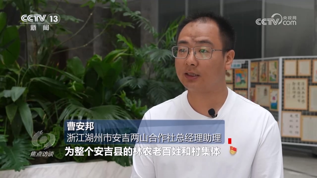 浙江湖州市安吉兩山合作社總經理助理曹安邦:“隨著這個項目的開發我們配套建設了1000多公里林道,包括100多個竹材分解點,配合竹產業的增值,為整個安吉縣林農老百姓和村集體帶動分紅5億元。”