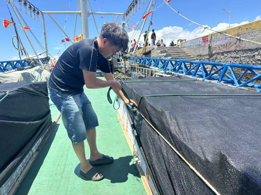 8月16日上午,閩惠漁00177號船長陳聰莆進行開漁前的最后準備工作。新華社記者 龐夢霞 攝