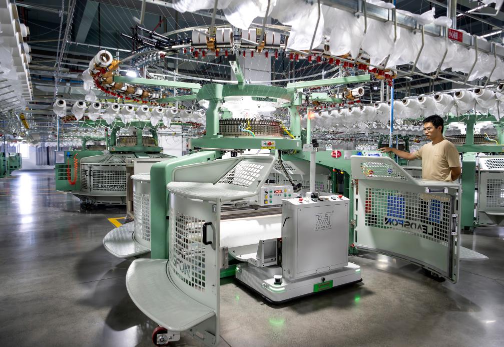 7月24日,一名工人在泉州聯興發針織織造有限公司的萊卡+5G智能數字化生產車間操控機器人工作。新華社記者 魏培全 攝
