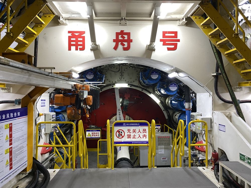 自2024年5月“甬舟號”盾構機始發以來,目前已掘進近2400米,深度位于海平面下約65米處。今年5月29日,工程迎來一個重要節點——盾構機由陸域段全面進入海域段施工。
