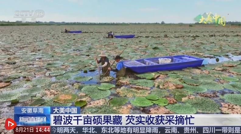 位于淮河岸邊的安徽省阜南縣蒙洼蓄洪區,曾經飽受水患困擾。近年來,當地依托水資源和地理環境,把水患變成水利,引導村民在蓄洪區的低洼地里發展起了芡實、蓮藕、水生蔬菜等適應性產業。這段時間,這里的4000多畝芡實陸續開始采摘。