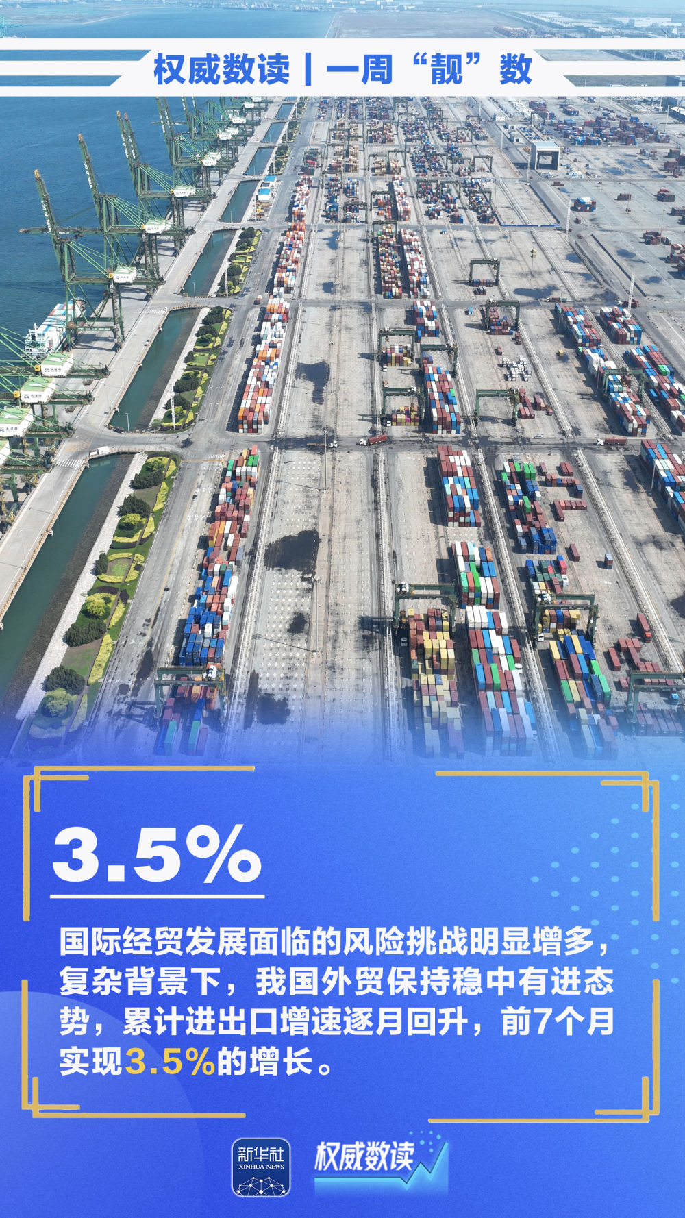 即將到來的九三閱兵活動按照閱兵式、分列式兩個步驟進行,時長約70分鐘;我國外貿保持穩中有進態勢,累計進出口增速逐月回升,前7個月實現3.5%的增長;今年前7個月,我國對上海合作組織其他成員國進出口2.11萬億元,規模創歷史同期新高……本周這些數據,最值得關注!
