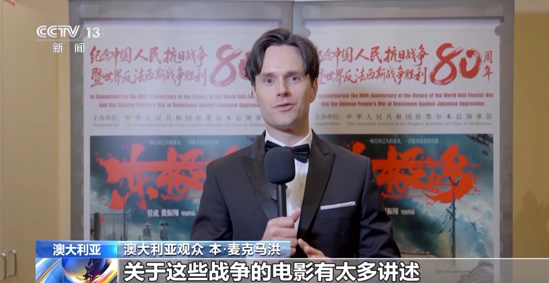 澳大利亞觀眾 本·麥克馬洪:關于這些戰爭的電影有太多講述,尤其是在澳大利亞。我們聽到的大多是歐洲視角下的故事,我之前對中國的抗戰歷史不太了解。