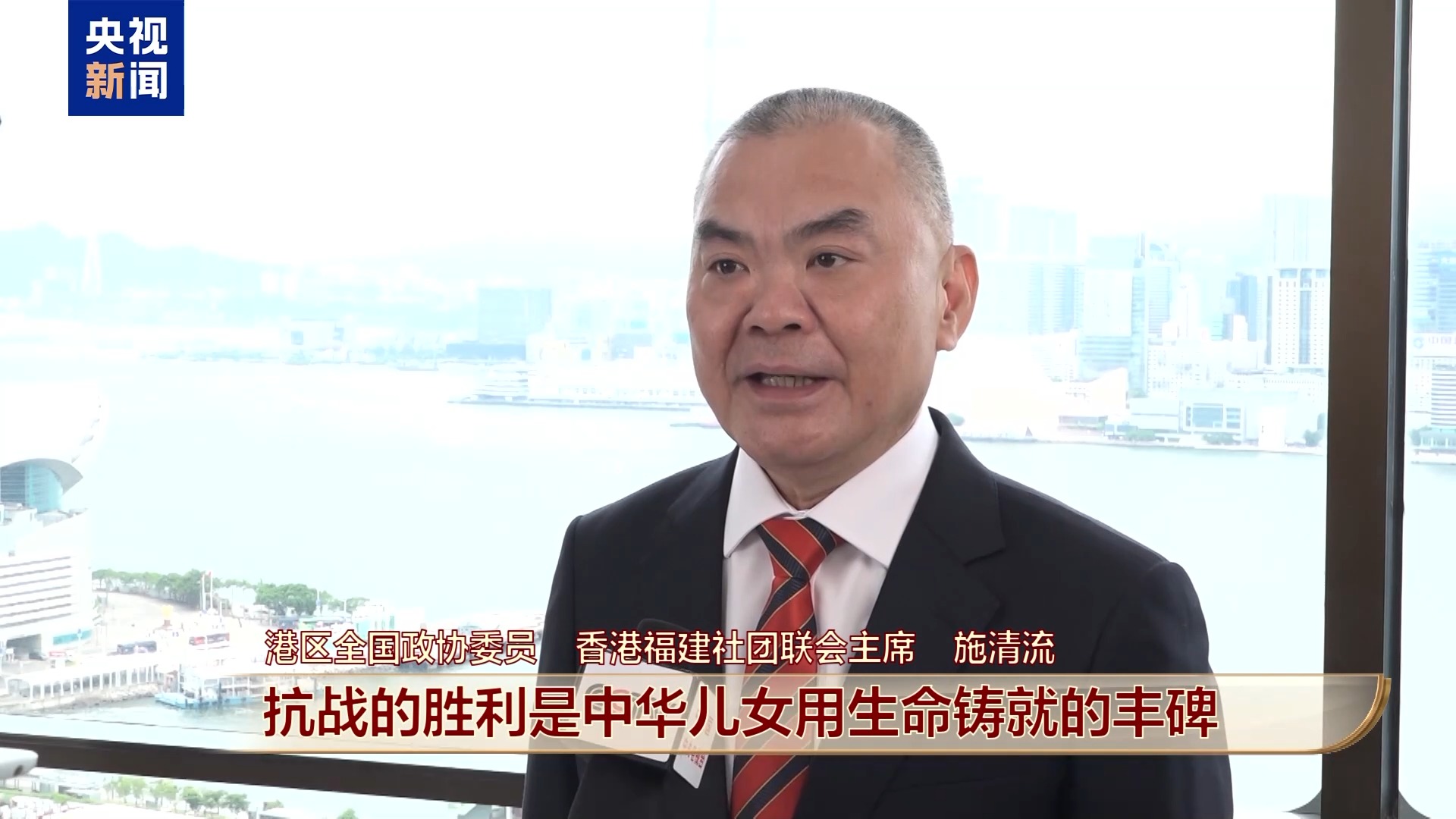 港區全國政協委員、香港福建社團聯會主席 施清流:抗戰的勝利是中華兒女用生命鑄就的豐碑。當年香港作為國際援華通道,無數先輩冒著炮火運送物資,印證了“天下興亡 匹夫有責”的擔當。今天我們更深刻地領會到,香港的命運從來都與祖國的命運緊密相連。筑牢國家安全防線,凝聚“愛國愛港”共識是香港由治及興的根基。