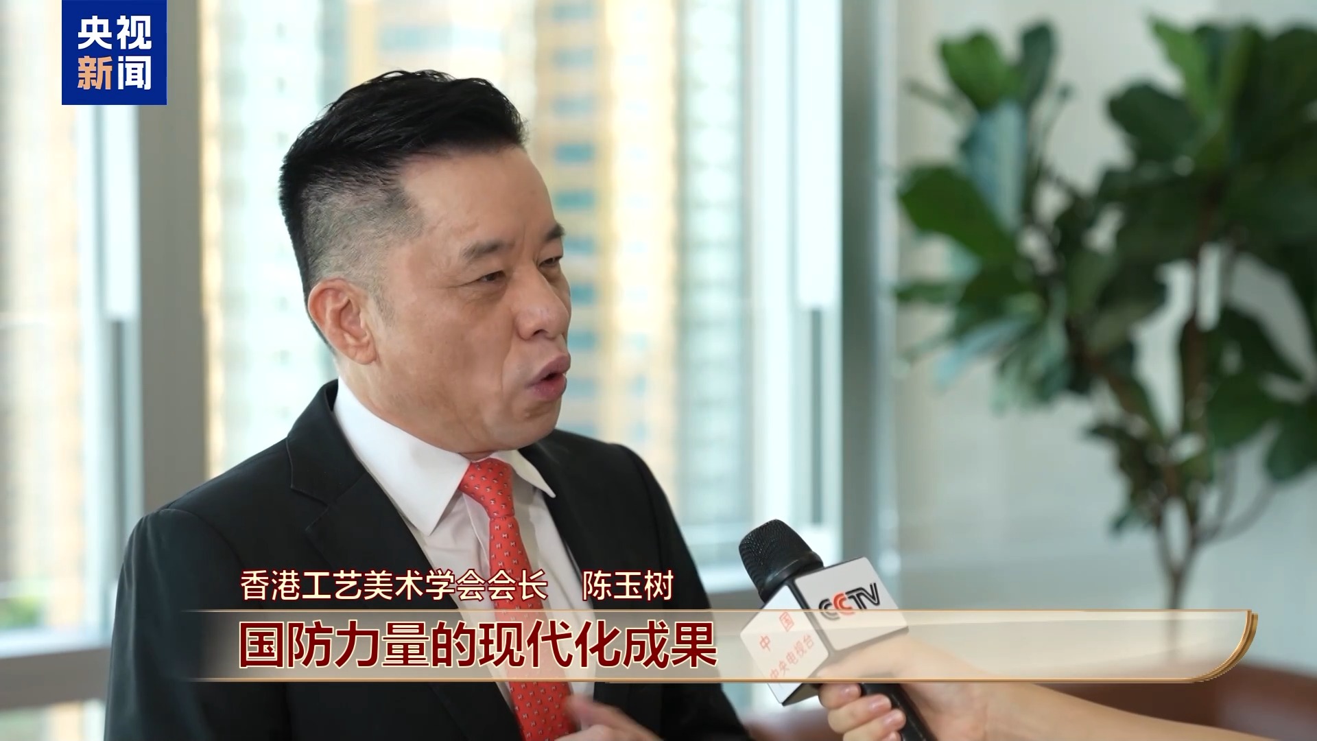 香港工藝美術學會會長 陳玉樹:九三閱兵不僅展示了國防力量的現代化成果,更喚起了全體中國人民對民族歷史的深刻記憶。正是無數抗戰英雄的犧牲,換來了中國經歷的和平和穩定。我們更要鼓勵香港各界人士積極地去投身國家的發展大局中,為中華民族的復興貢獻力量。