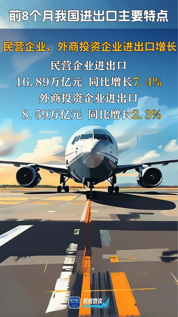 海關(guān)總署8日發(fā)布數(shù)據(jù)顯示,今年前8個月,我國貨物貿(mào)易延續(xù)平穩(wěn)增長態(tài)勢,進(jìn)出口總值29.57萬億元人民幣,同比增長3.5%。8月份,我國貨物貿(mào)易進(jìn)出口總值同比增長3.5%,出口、進(jìn)口連續(xù)3個月實現(xiàn)雙增長。