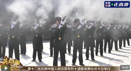 安葬儀式上,禮兵鳴槍12響,向志愿軍烈士致敬。這也是鳴槍禮的最高禮節。