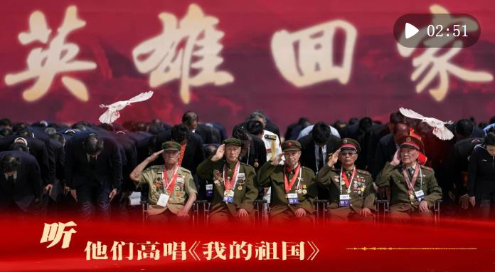 在沈陽抗美援朝烈士陵園,幾位志愿軍老兵唱起了《我的祖國》。他們用歌聲迎接戰友回家。
