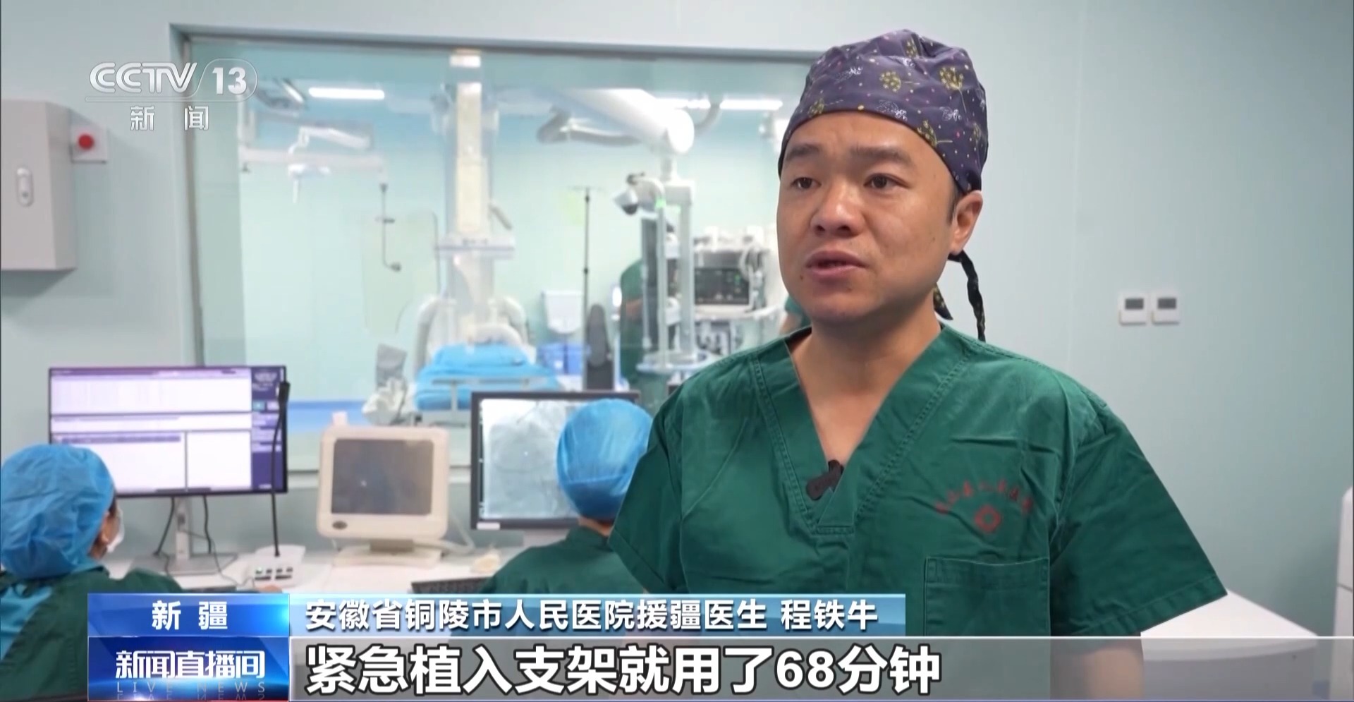 安徽省銅陵市人民醫院援疆醫生 程鐵牛:緊急植入支架就用了68分鐘。心內科急診有個“黃金90分鐘”,現在我們終于把這條生死線前移了一千里!