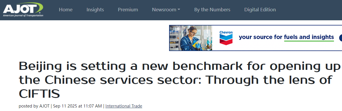 外媒同樣對服貿會予以了高度關注。美國運輸雜志(American Journal of Transportation)近日報道稱,歷經十三載發展,服貿會已從行業性展覽升級為全球性開放平臺,為國際服務貿易樹立了新標桿。服貿會順應服務貿易數字化、智能化、綠色化發展的新趨勢,實現了歷史性跨越,憑借高度的專業性和開放性,成長為真正國際化、開放化的平臺。與此同時,中國一系列開創性政策成效顯著,推動服務貿易開放、優化營商環境,將展會藍圖轉化為市場現實。
