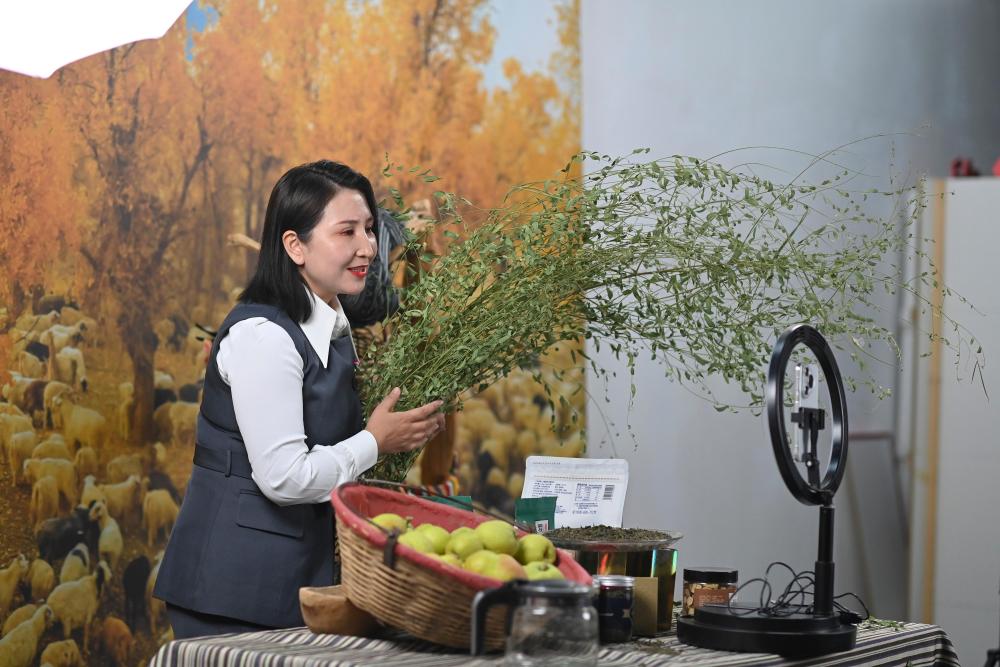 9月19日,尉犁縣電商協會負責人米日阿依·阿西木在達西村的電商基地直播推介達西村農產品。近年來,達西村構建“農戶生產+企業加工包裝+電商銷售+物流配送”全產業鏈,為縣域經濟發展培養孵化本土直播電商人才,促進傳統產業轉型升級。