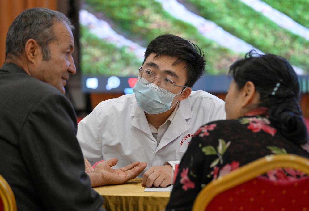 9月18日,達西村村干部古力帕爾力·克衣木(右)入戶詢問村民生活情況。